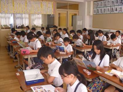 そっと4年生の教室に入ってみました。クラス全員が一生懸命に自分の本を読み続けています。読む姿もとてもステキです。