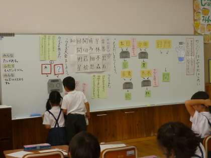 今までにすでに学習した漢字を使って,楽しく学習するページです。2つの漢字を組み合わせるとできる新しい漢字はなんだろうか・・・・みんなでクイズ作りをしながら,漢字の世界を楽しみます。