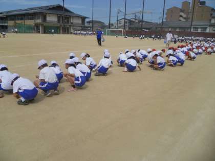1・2・3年生は,中間休みに運動場の石拾いをしました。
