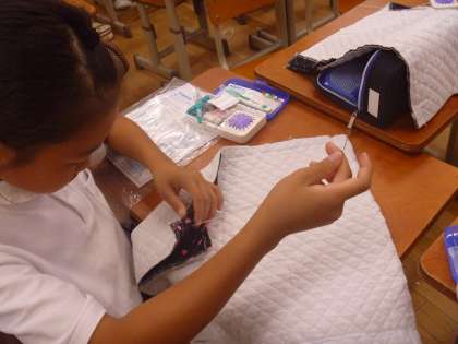 自分で一針一針縫って作った「マイナップサック」。大切に大切に使う5年生の姿が今から楽しみです。