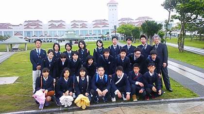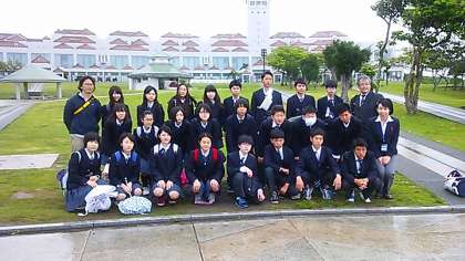 沖縄県平和祈念資料館をバックに、9−1と9−2の集合写真です。