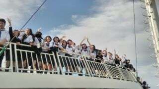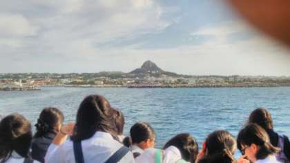 船がこれだけ伊江島から離れても、まだこの場所から離れられない皆の様子が私の心を熱くします。