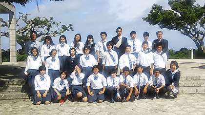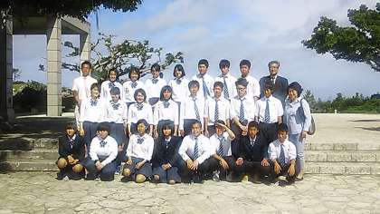 9−1と9−2の学級写真です。水族館に入る前に撮影したものです。