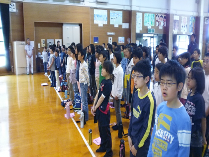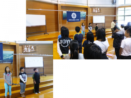 入所式の様子です。司会の進行で誓いの言葉、校歌斉唱と続きます。開睛館の校歌がみさきの家いっぱいに響くくらいに大きな声で歌ってくれたことでしょう。