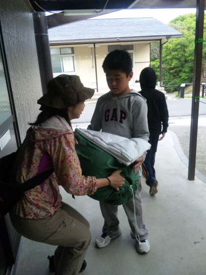 今日のメインは「麦崎ウォークラリー」,そして「野外炊事」,夜は「キャンプファイヤー」です。今日一日,どの係も仕事がいっぱいです。がんばって,やりぬいてください。