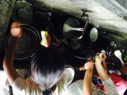 野外炊事のカレーがおいしそうにできあがりました。それに先立って鍋などの汚れを徹底的に落としている写真も届いています。みんなで作ったカレーはさぞおいしいことでしょうね。残さないようにお腹一杯食べてください。