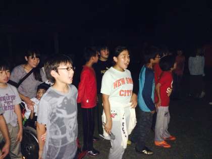 みんなの真ん中で燃える大きな炎を見ながら,子ども達はどんなことを考えているのかなあ。(ちょっぴり不安だった前日の夜のこと・・)(えっ あっ。できた,すごーい)とびっくりした海の活動。(たのしーい。もう,明日帰るんだ・・)
