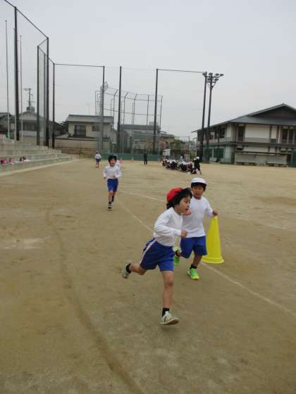 (初めてだけど 大丈夫です)1年生,2年生のマラソン大会は6周(1500m)。