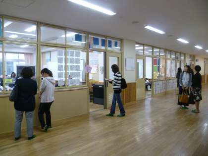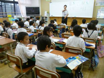 まずは,保育園・幼稚園の先生方に,入学してから1か月ちょっとたった子どもたちの学習の様子を見ていただきました。