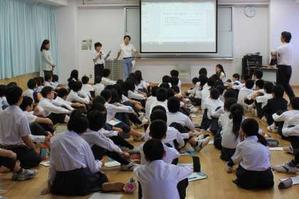 今日は7年生になって初めての学年道徳を行いました。互いの意見を尊重したり,共感できたら自分の意見を変えてよい・・など,道徳の学習におけるいくつかの約束を確認し,今回のテーマについて一人ひとりが真剣に考えました。今まで積み上げてきた学習の成果もあって,全体の中でもしっかり自分の考えを周囲に伝えられる生徒が多くいました。