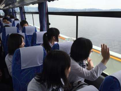 もうまもなく関西国際空港に到着です。海の向こうに空港が見え、テンション上がってきています。