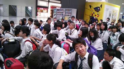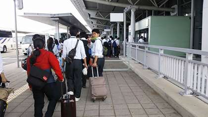無事関空到着。移動もてきぱきとでき、「すばらしい」との言葉が,送られてきた写真に添えられていました。日ごろの集団行動の練習がいきているのでしょうね。