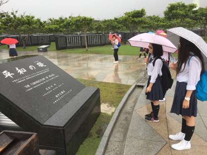 引き続き、平和祈念資料館の写真です。真剣に生き残られた方の証言を読んでいます。事前学習をしっかり積み重ねたこともあり、真剣に展示を見る姿が印象的でした。予定より早く資料館に到着しましたので、展示を早く見終わった生徒は、沖縄戦で亡くなった方の名前が刻まれている刻銘碑も見学しました。