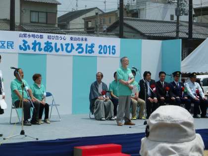 今年度は日吉ヶ丘高校の生徒により司会でオープニングがスタートです。門川京都市長をお迎えし,国会議員の前原さんや地域にかかわりのある府会議員や市会議員の方々も参列いただき,盛大に開催されました。