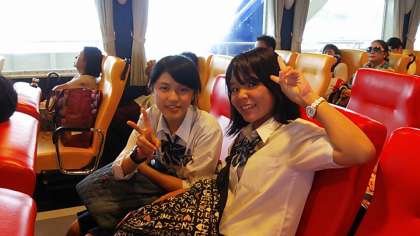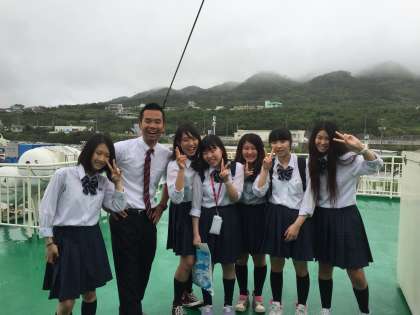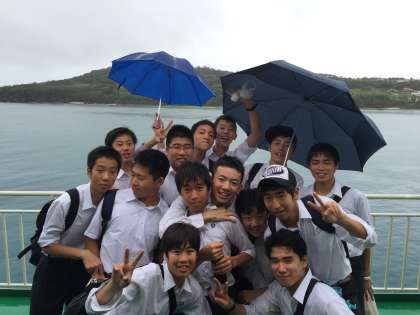 伊江島へのフェリーの中です。楽しそうな様子が伝わってきて、こちらまで笑顔になります。