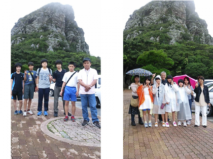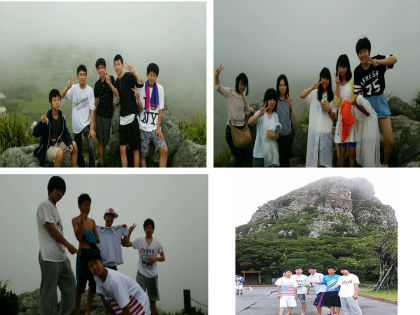 雨は降っていないようですね。城山の頂上は霧でせっかくの景色は見えにくそうですが・・・。先生たちもいろいろな場所での写真をゲットしようと移動が大変です。しかし,写真がアップされるのを心待ちにしている方々へのためによろしくお願いします。