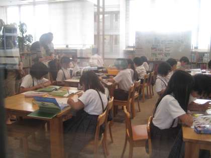学習の様子を島根県からの視察の先生方に見ていただきました。ちょっと多人数だったので緊張気味でしたが,担任と司書教諭の二人の先生と,調べたことをカードにまとめて交流しました。