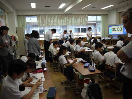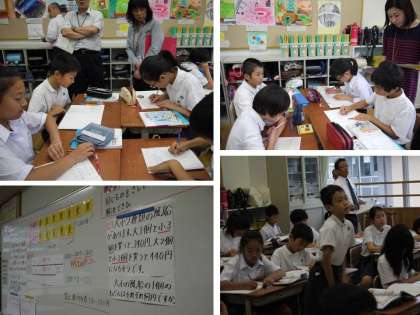 5年生の算数の時間で公開授業をおこないました。たくさんの先生に見守られて,いつもより緊張気味の子どもたちでしたが,集中して学習に取り組めていました。5年生のこの学習は中学生での数学「連立方程式の解き方」につながる大切な単元です。