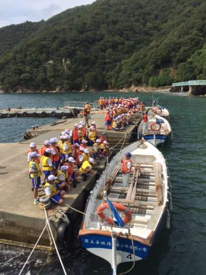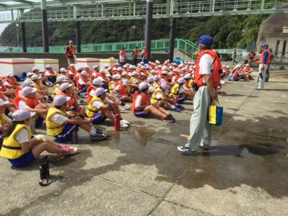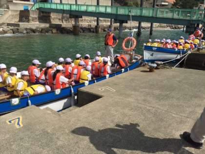 その後大階段でパン弁当を食べて、少しゆっくりしてから湾内のカッター学習をしています。」とのことです。
