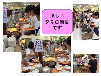 カッター学習が終わり、部屋でゆっくりしたらバイキングの夕食です。