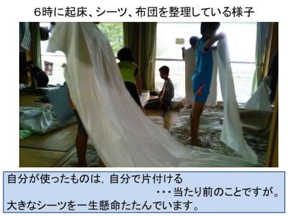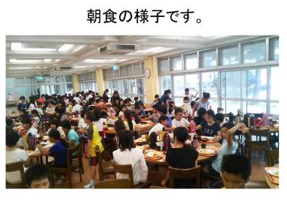 みんな元気に朝のつどいを終え,朝食をにぎやかに食べたようです。