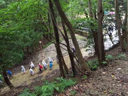 野外炊事の前にハイキングを行ったようです。