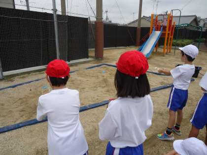 9月3日(木)に生活科の単元「きせつであそぼう」で夏と遊びました。準備して頂いたペットボトルやマヨネーズ容器を使って水を飛ばしたり水でグランドに絵を描いたりして楽しみました。シャボン玉では道具を工夫したり息の吹き方を工夫したりして大きなシャボン玉作りに挑戦していました。グランドのあちらこちらで思う存分活動を楽しむ姿が見られました。材料集めにご協力して頂いてありがとうございました。