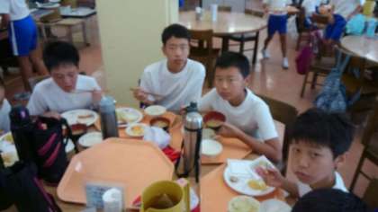掃除が終わって自然のいえ最後の食事です。みんな元気です。
