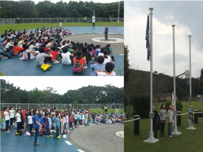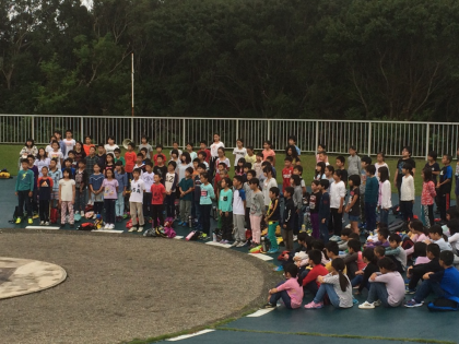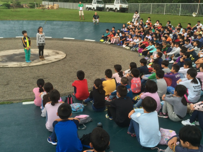 7:00予定通り朝のつどいが始まりました。南大内と合同です。それぞれの学校紹介をしました。