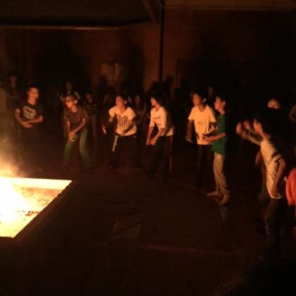 火に集うキャンプファイヤー。