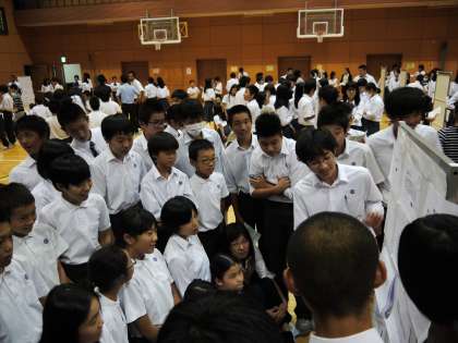 昼からは9年生全員が自分の探究テーマを発表し、仮説を立てて、