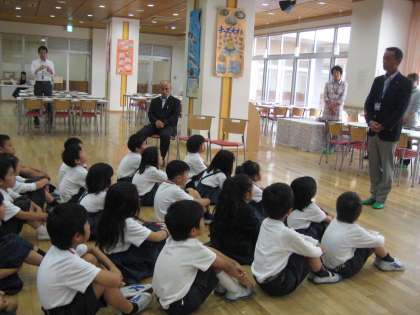 市教委から村山先生,岡本副校長先生,スタッフ先生,担任の先生方も参加しての開講式でした。