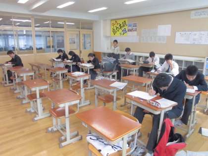 7〜9年生は,次の水曜日から金曜日までの3日間で,第4回テストが実施されます。本日の土曜学習には71名が参加し、テストにむけて黙々と学習に取り組んでいました。9年生にとっては、進路希望の決定を控え、一番重要なテストといっても過言ではないかもしれません。そのことは十分理解しているようで、それが、本日の黙々と取り組む姿として表現されているのではないかと感じています。もちろん、7年・8年も黙々と真剣に取り組み、それが9年生に,「負けてられない」と思わせるのかもしれません。本日の帰宅後・明日・あさってと休みを有効に使って学習を進めてください。みなさんの頑張りを期待しています。