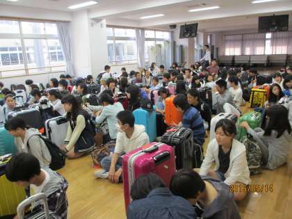 朝早くから元気な声が校舎に響きました。いよいよ9年生の修学旅行(沖縄・伊江島方面)の始まりです。出発式では、校長先生・修学旅行委員のあいさつ、3日間お世話になる添乗員さん・カメラマンの紹介がありました。