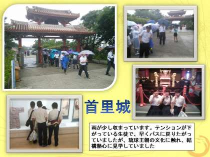 雨の中、世界遺産・首里城の見学です。朱色がきれいです。
