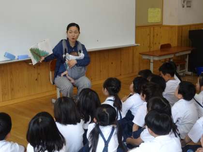 昼読書の1年生の教室で お話を聞かせてもらった子ども達。