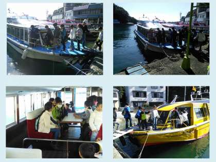 賢島港に到着し,船に乗り込んでいる様子です。