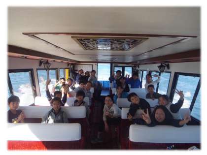 なかよし港までの船の旅は,すばらしい青空のもと,暖かくて風が心地よいです。