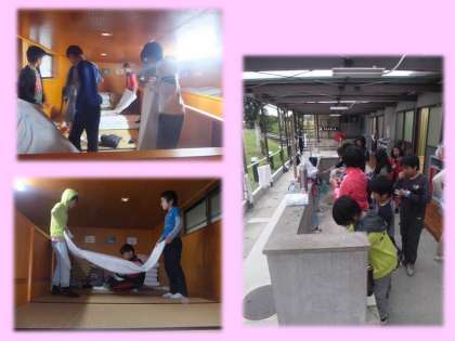 起きてからは、布団、シーツをきれいにたたんだり、生活係がシーツの返却、荷物の整理や朝の準備に取り組んでいます。