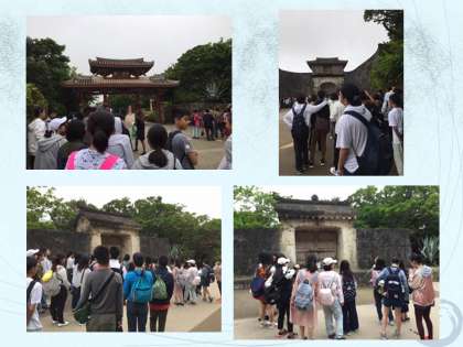 守礼門の下は柱で3つの入り口が作られています。真ん中の入り口は王様が通る入り口です。せっかくなので王様の入り口を通過。気持ちだけでも王様。