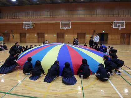 クラスごとに5くみさんといっしょにバルーンをやりました。