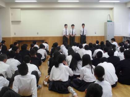 第1回試験の1週間前となり、この1週間いろいろな誘惑を断ち切り学習に集中することを8年生全員で確認しました。集会の後半では、8年のリーダー達が自主的に集会を進行していました。言うなれば、試験に向けての決起集会でもあります。成績を上げるためには、勉強を「やらされている」感覚があるうちはだめで、「自分からやろう」という個人の意志を持つ必要があります。この1週間の健闘を祈りたいと思います。