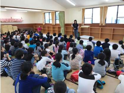 みさきの家での約束や寝袋、布団のたたみかたなどの話を聞いています。しっかりと聞いて,できるように協力して挑戦してほしいと思います。