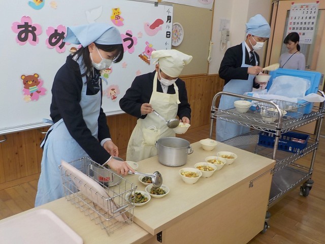 お兄さんお姉さんたちには、給食準備も手伝ってもらいました!手際よく配膳する姿、頼もしかったです!