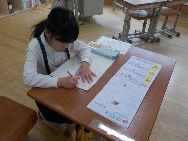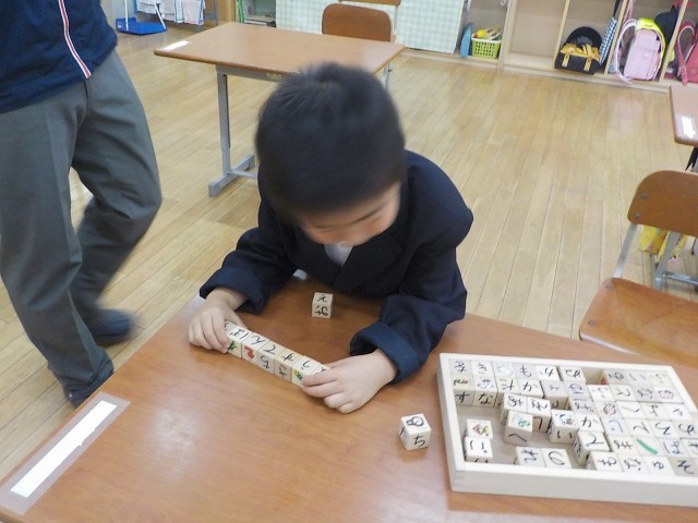 朝の会の後、1時間目の学習につながっていきます。ひらがなの積み木でことばを作るお友達もいれば、漢字の練習を進めるお友達もいます。