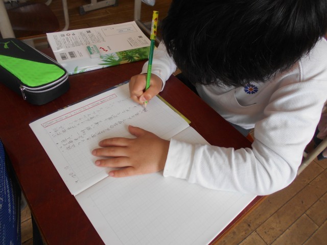 国語科「わたしのさいこうの一日」の授業風景です。