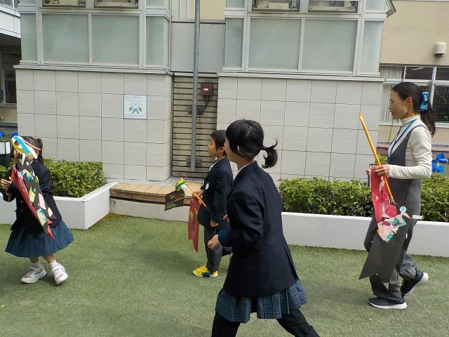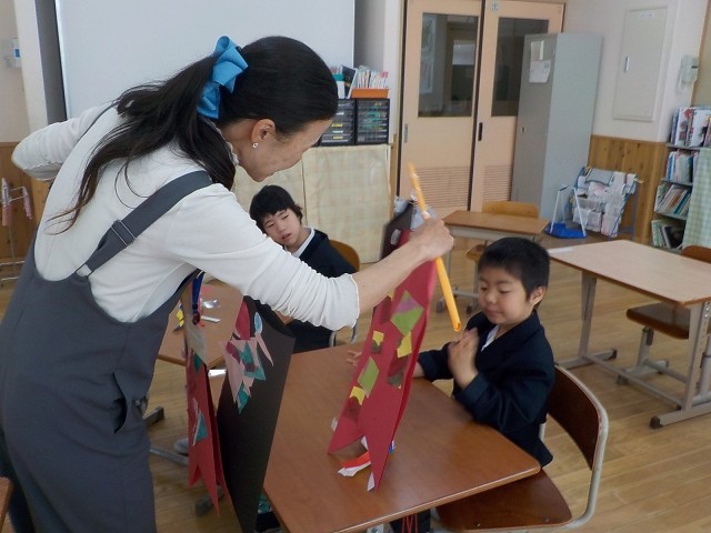 完成した作品がとってもすてきで、すぐに教室の中でこいのぼりを泳がせて楽しみました。