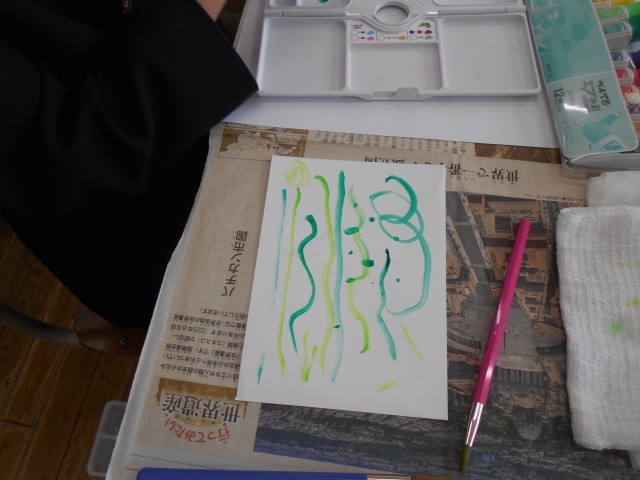 絵のぐ+水+ふで いい感じ ~図工~