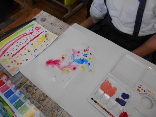 図工で「絵のぐ+水+ふで いい感じ」の学習をしました。