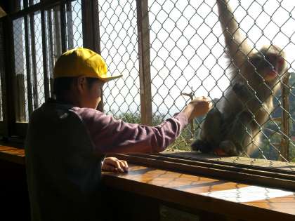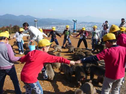 初めは野生の猿に会うことを怖がっていた子どもたちも,スタッフの方の説明を聞いたり,えさを食べにくる子猿のかわいさに喜んだりするうちに、猿さんを大好きになっていました。中にある遊具でも思いっきり遊び,体をいっぱい使った楽しい遠足でした。